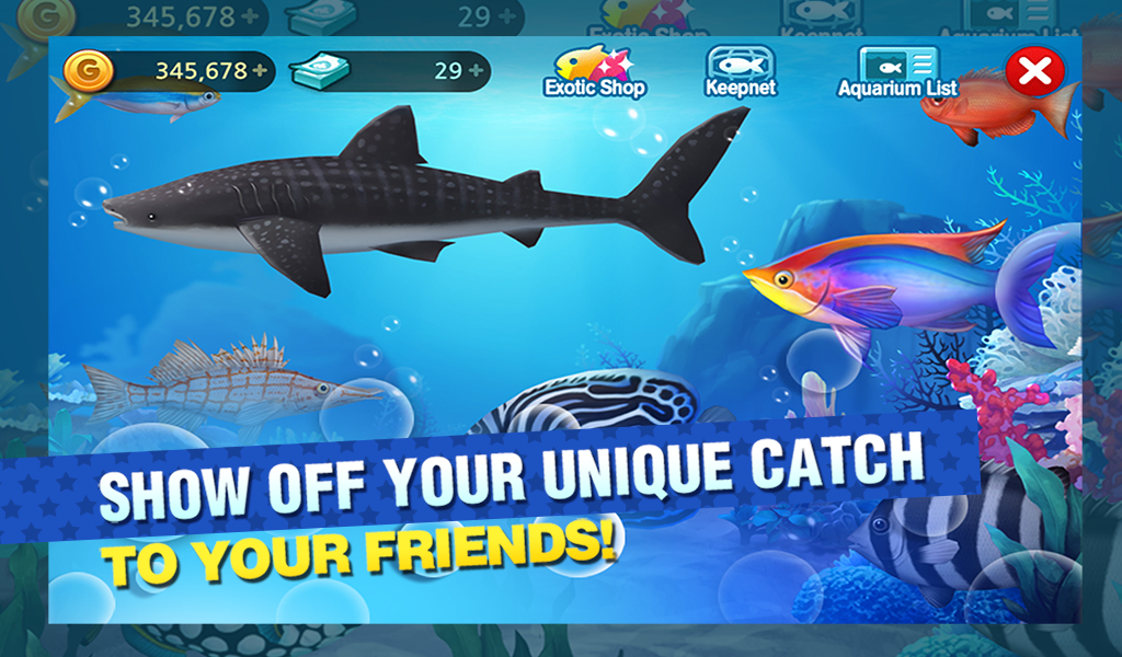 Juega el nuevo juego casual de pesca estilo rápido y golpe-a-mole a experimentar el mundo de hermosos peces únicos de una manera diferente.