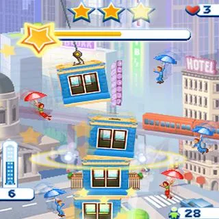 Oyunda hizalı bir şekilde devam etmelisiniz. eğer bina yamuk olacaktır ve sallanmaya başlayacaktır. Sallandığı içinde sizde diğer parçayı koymakta zorluk çekeceksiniz. Her koyduğunuz parçaya insanlar havadan şemsiye ile inerek taşınmış oluyorlar ve sizlerde puan kazanıyorsunuz. Üç kere devirme hakkınız bulunmaktadır. Üçten sonra oyun tekrar başlayacaksınız. Dikkatli olmanız gereken bir oyundur.