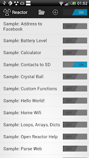 Un script puede ser descargado al Reactor escaneando un código QR, sta versión de la App Reactor es GRATIS y sin más limitaciones que sólo una secuencia de comandos se puede ejecutar a la vez. Para permitir que varios scripts en paralelo, instale el desbloqueo del reactor que también está disponible en el Android Market. Características: - AHORA integración con Facebook y Twitter - SCAN (código QR??) y run - Servicio de carreras de fondo con las secuencias de comandos - inicio automático tras el arranque - resaltado de sintaxis - modo de depuración - una biblioteca de funciones que le permite utilizar las intenciones, los proveedores de contenidos , los medios de comunicación, archivos, elementos de interfaz de usuario sencillas, como cuadros de diálogo, alertas o notificaciones, hacer peticiones HTTP, ubicación, uso de radio de palanca y más.
